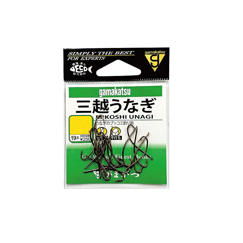 手返しよく釣れるようにハリス付きのウナギ針がいいです。(今使っているのは針13号+ハリス4号)